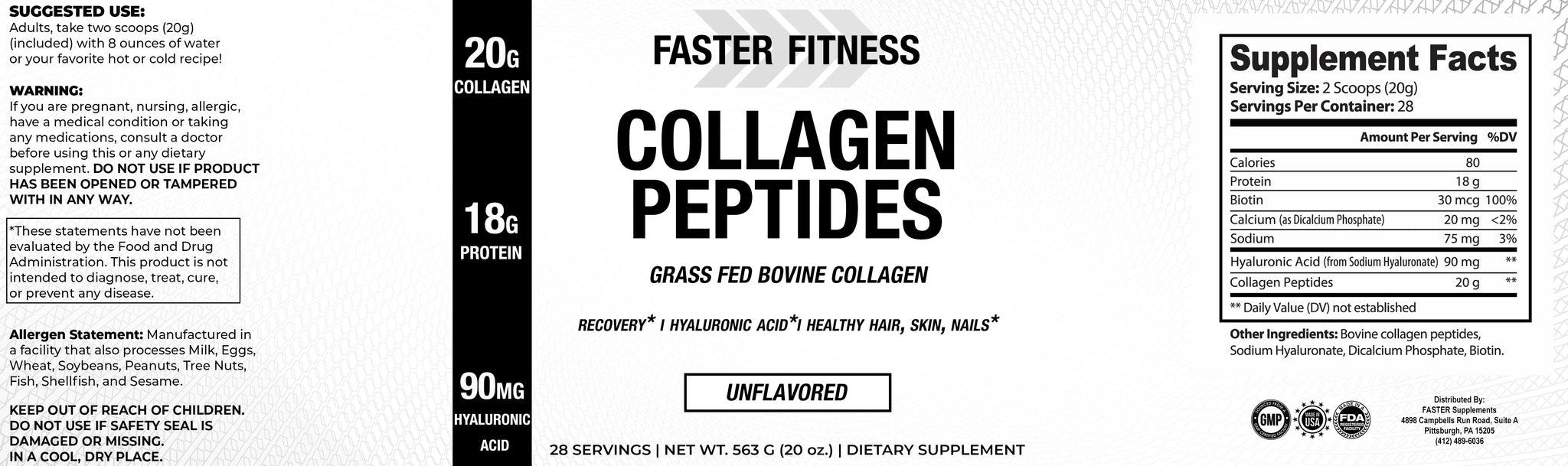 Grass Fed Protein  This dietary supplement can help improve muscle mass and reach optimal levels of protein per day.  18 Grams of Hydrolyzed Collagen Peptide Protein are in each serving providing many benefits including muscle building and recovery.  This unflavored supplement can be added to any of your favorite beverages.   Adding to other flavored supplements, tea, and coffee are very popular choices.